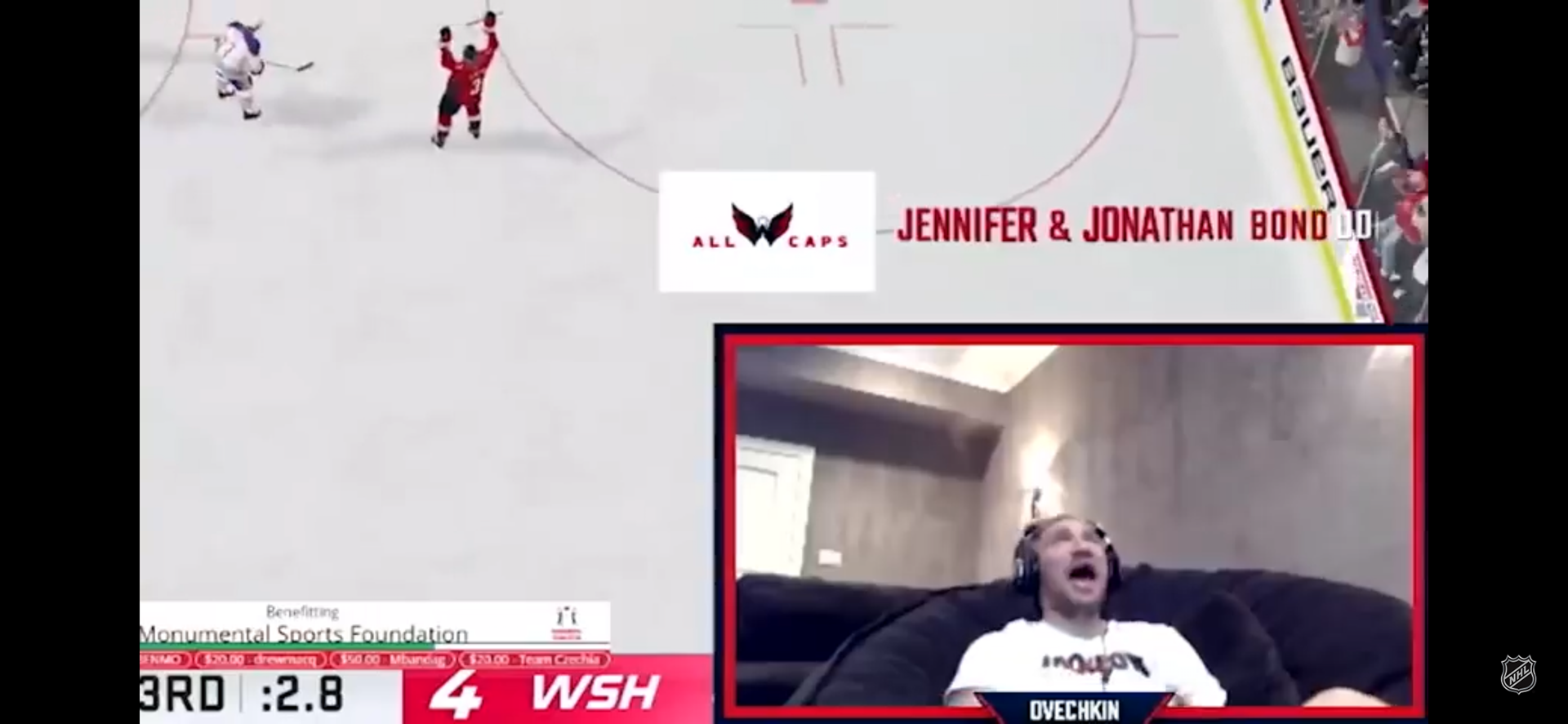 As part of a Caps Gaming and EA Sports initiative to support relief efforts during the Covid-19 pandemic, the Capitals hosted an NHL 20 showcase between Wayne Gretzky and Alex Ovechkin. I was tasked with designing both a sponsorship one-sheeter to distribute to potential clients, and to create in-stream Twitch assets specifically for the showcase.